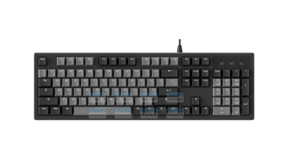 Bàn phím được trang bị keycap PBT Double-Shot cao cấp, mang lại độ bền vượt trội so với loại keycap ABS truyền thống. Ưu điểm của PBT là không bị bóng dầu sau thời gian dài sử dụng, hạn chế mài mòn ký tự phím và giữ được cảm giác gõ chắc chắn, mềm mại. Điều này đồng nghĩa với việc DAREU EK104 Grey Black Dream Switch có thể đồng hành cùng bạn lâu dài mà vẫn giữ được vẻ ngoài và trải nghiệm như mới – yếu tố quan trọng khi chọn bàn phím cho công việc hàng ngày hoặc chơi game thường xuyên.