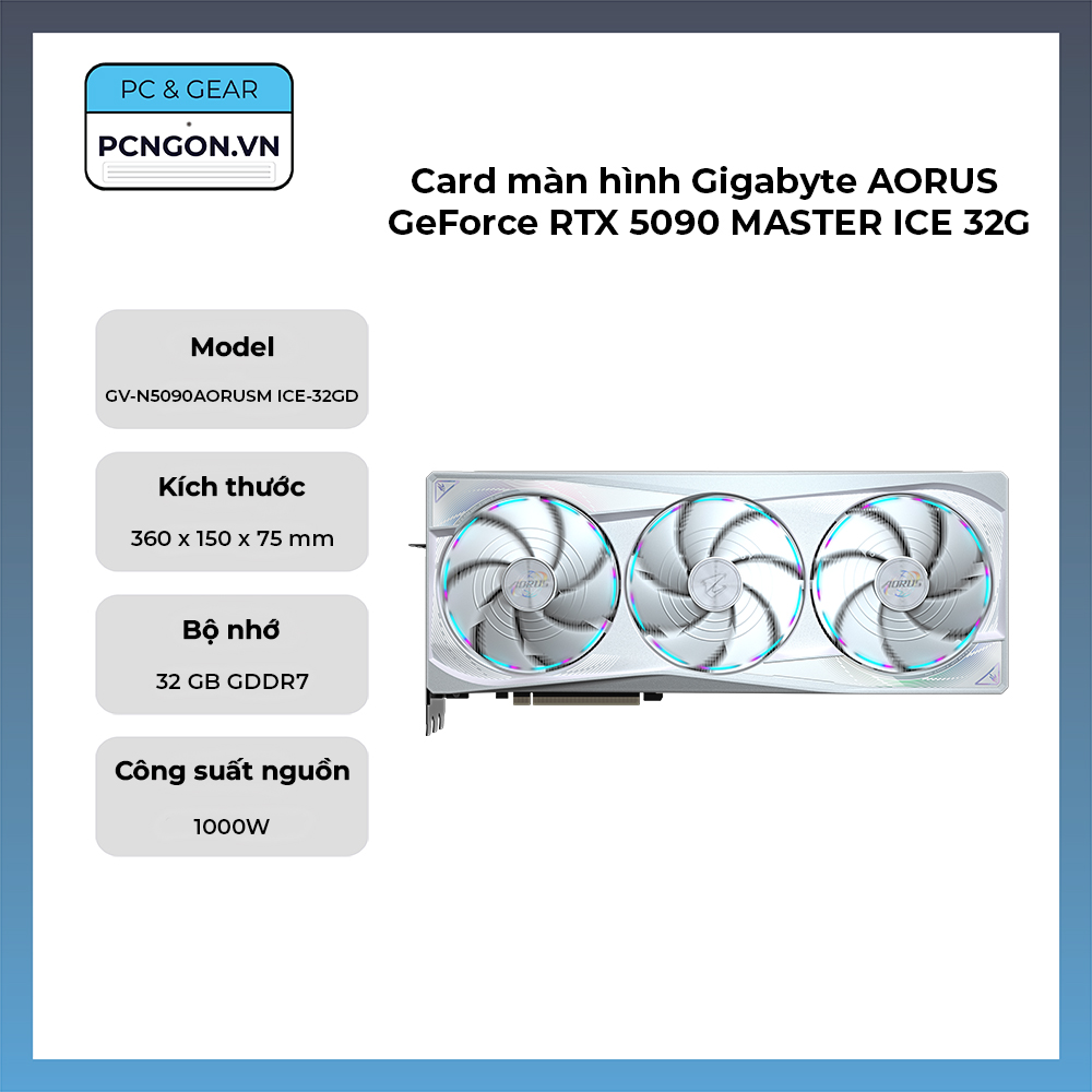 Card màn hình Gigabyte AORUS GeForce RTX 5090 MASTER ICE 32G là một siêu phẩm đồ họa, đại diện cho hiệu năng đỉnh cao trong phân khúc cao cấp. Được xây dựng trên kiến trúc NVIDIA Blackwell đột phá, chiếc card này mang lại sức mạnh không giới hạn cho cả game thủ hardcore lẫn nhà sáng tạo nội dung chuyên nghiệp. Dưới đây, Pcngon sẽ giúp bạn khám phá những công nghệ và tính năng nổi bật của Card màn hình Gigabyte AORUS GeForce RTX 5090 MASTER ICE 32G.