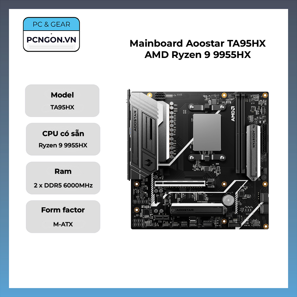 Mainboard Aoostar TA95HX AMD Ryzen 9 9955HX là bo mạch chủ hiệu năng cao tích hợp sẵn bộ vi xử lý đầu bảng AMD Ryzen™ 9 9955HX, mang đến sức mạnh vượt trội cho các dàn máy chơi game, đồ họa hay làm việc chuyên nghiệp. Hãy cùng Pcngon khám phá chi tiết những điểm nổi bật khiến TA95HX trở thành một trong những mainboard đáng chú ý nhất hiện nay.