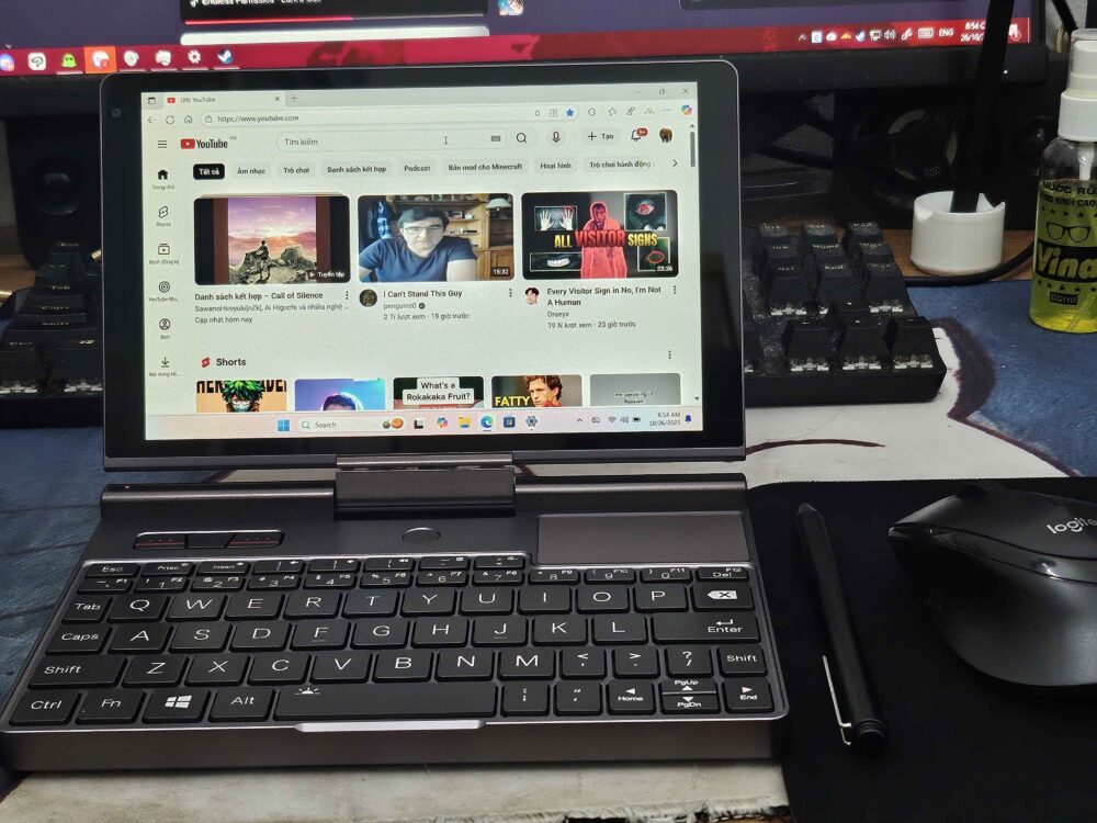 máy tính cầm tay này có kích thước chỉ tương đương một cuốn sách, với màn hình 8 inch xoay 360 độ. Thiết kế này không chỉ giúp người dùng dễ dàng mang theo mà còn hỗ trợ chuyển đổi nhanh chóng giữa chế độ laptop và tablet, tạo sự tiện lợi cho các nhu cầu làm việc hoặc giải trí. Chất liệu vỏ nhôm cao cấp cùng màu sắc tinh tế làm tăng độ bền và tính thẩm mỹ.
