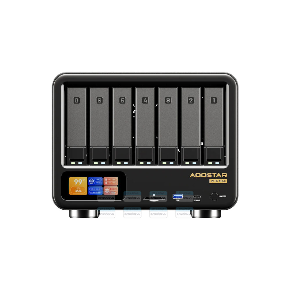 Máy tính Mini PC Aoostar WTR Max Intel i5-1235U (Barebone) nổi bật với khả năng hỗ trợ tới 11 ổ lưu trữ bao gồm 6 khay HDD 3.5 inch và 5 khe M.2 NVMe, giúp người dùng xây dựng hệ thống lưu trữ dung lượng lớn với tốc độ truy xuất cực cao. Đây là điểm mạnh vượt trội so với nhiều Mini PC khác trên thị trường, đặc biệt phù hợp cho nhu cầu NAS, backup dữ liệu hoặc xây dựng server cá nhân hiệu năng cao.