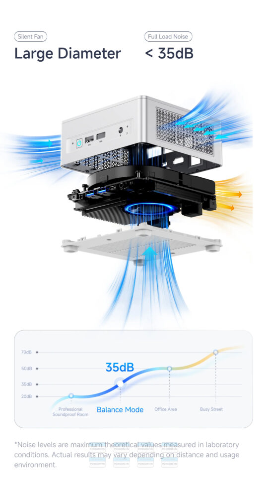 Với kích thước cực kỳ nhỏ gọn và thiết kế Slim tinh tế, UM750L dễ dàng bố trí trong mọi không gian làm việc hay giải trí. Máy có thể đặt dưới màn hình, gắn sau VESA hoặc mang theo khi di chuyển. Trọng lượng nhẹ cùng vẻ ngoài tối giản giúp chiếc mini PC này không chỉ mạnh mẽ mà còn thẩm mỹ, phù hợp cho người dùng hiện đại yêu thích sự gọn gàng.