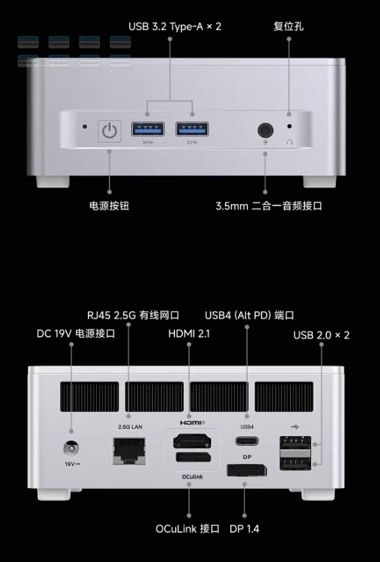 Máy tính Mini PC Minisforum X1 Lite 255 AMD Ryzen 7 255 đi kèm đầy đủ cổng USB4, HDMI 2.1 FRL, DP 1.4, LAN 2.5G và WiFi 6E, mang đến khả năng kết nối linh hoạt cho mọi nhu cầu. Đặc biệt, hỗ trợ xuất hình lên đến 8K@60Hz, giúp làm việc với nhiều màn hình độ phân giải cao một cách chuyên nghiệp. Sự đầy đủ này giúp X1 Lite-255 phù hợp với văn phòng, học tập, làm sáng tạo hay làm hệ thống trình chiếu.