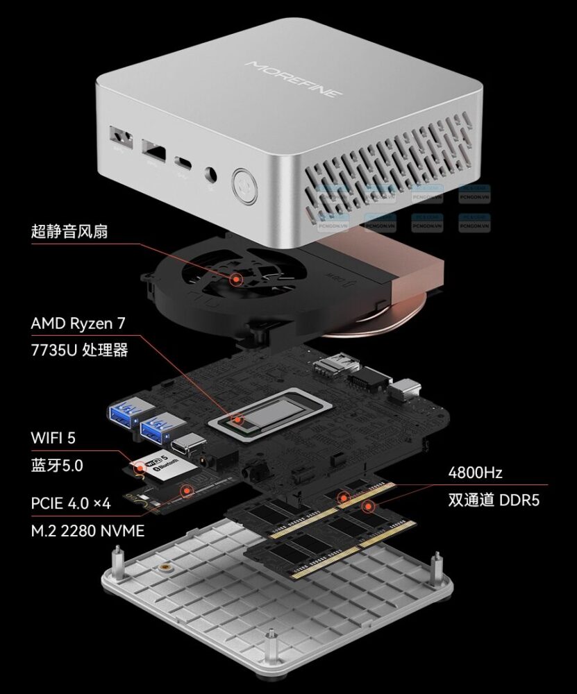 Thông số kỹ thuật Máy tính Mini PC Morefine M700 AMD Ryzen 7 7735U (Barebone)