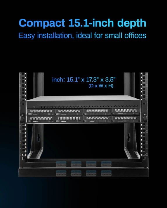 Thiết bị lưu trữ NAS TerraMaster U8-500 Plus Rackmount 8 Bay 192TB là hệ thống lưu trữ mạng cao cấp được thiết kế dành cho doanh nghiệp, trung tâm dữ liệu và các hệ thống cần quản lý khối lượng dữ liệu lớn với hiệu suất ổn định. Với thiết kế rackmount chuyên nghiệp, khả năng hỗ trợ nhiều ổ cứng dung lượng cao và nền tảng quản lý thông minh, thiết bị mang lại giải pháp lưu trữ tập trung an toàn và hiệu quả. Nếu bạn đang tìm kiếm một hệ thống NAS mạnh mẽ cho hạ tầng CNTT, hãy cùng Pcngon khám phá chi tiết những tính năng nổi bật của sản phẩm ngay bên dưới.