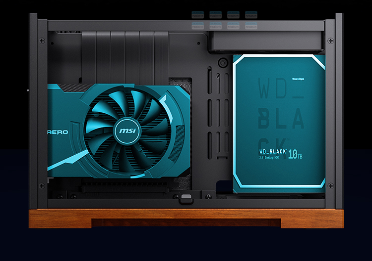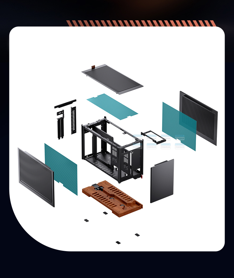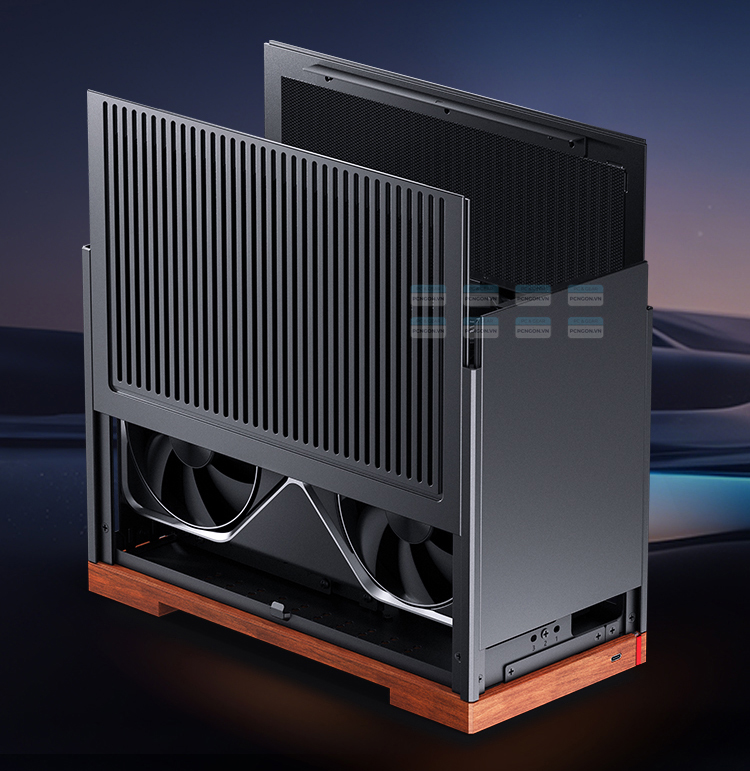 Jonsbo T9 được chế tạo từ khung nhôm dày 4mm, thép 1mm và gỗ óc chó Bắc Mỹ dày 20mm – tạo nên một tổng thể chắc chắn, sang trọng và đậm chất thủ công. Với kích thước chỉ 155 x 325 x 224mm, case dễ dàng bố trí trong không gian làm việc, mang lại vẻ đẹp tối giản nhưng đầy cuốn hút.